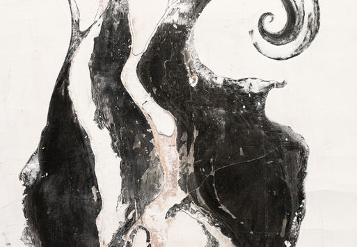 Motions 2025 Solo Exhibition Parterre Projects, 2025 Curator: Keren Yaela Golan Almost imperceptibly, a crack, an opening appears, and a little indulgence springs out to announce a new beginning. Katrin Tolkovsky's fantastical world revolves around purification and rejuvenation through processes of fragmentation and engraving. In her first solo exhibition, the artist combines diverse media (painting, video, sculpture, and sound), manifesting a remarkable synthesis of touch and expression. Katrin uses the traditional sgraffito technique – applying layers of plaster and paint and scratching the top layer while it's still wet – to expose contrasting layers of material and color. Tolkovsky paints and plasters the painting recursively. The painting emerges from within the wall, revealing a layer teeming with fractured vitality that transforms into a source of beauty and solace. The canvas – raw and crucified – is nailed to the wall like an organic skin, almost human. It unravels and crumbles, shedding its layers to reveal traces of life that evolve with time. Past and present interweave to form delicate scars of grace and rejuvenation. Her creative process, grounded in destruction and revealment, mirrors an endless pursuit of elusive truth and emerging meaning. Her works navigate between imagery and abstraction, between nature and the imaginary, gravitating toward threshold spaces (strange flora and disembodied organs) and resonating in memory as traces of ancient archetypes. The sound work and music production were designed and composed by Eran Hadar and Ohad Koski. The ceramic sculptures present ritualistic and protective creatures. In them, fantastic nature takes on a form, assumed by mystical hybrids that represent moments of purification and healing. A sound emerges from within, bringing a dimension of vitality and fluidity, creating a dialogue between their static external form and internal vivacity. The sound work and music production were designed and composed by Eran Hadar and Ohad Koski. "Motions" invites viewers on an intimate voyage through time, fragments, and rejuvenation. It calls us to listen to our inner resonances, as individuals and as a society, to see incompleteness as a space for discovery, and to embrace the hope that glimmers through the cracks. Keren Yeala-Golan